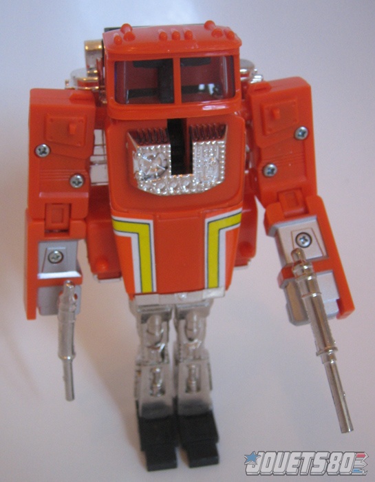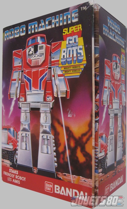 Issue de la série 2, voici la version « light » de Staks (une version avec remorque a également été distribuée). Le mode robot n’est pas des plus réussi, voir même assez vilain le rétrogradant à la dernière place du podium des Super Gobots. La faute à une tête mal intégrée qui donne l’impression d'une figurine sans cou. La transformation quant à elle, est assez bien pensée et permet d’assembler un camion qui est lui, bien plus stylisé. Reste que le jouet porte la mention de « die-cast », et là, la notion de publicité mensongère prend tout son sens. Ainsi, les pieds du robot mis à part, aucun autre élément die-cast et le mode véhicule présente donc un jouet vide de fer… Origine: Euro