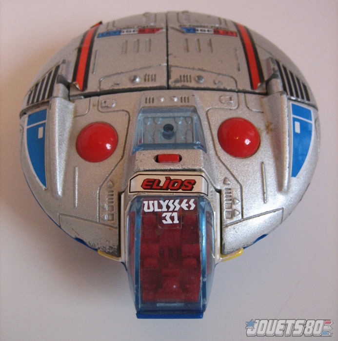 L'Odysseus se charge des déplacements galactiques, mais une fois atterrii sur une planète, c'est Elios qui est utilisé en tant que véhicule de reconnaissance. Cette soucoupe possède un mode "attaque" et pour se faire, celle-ci s'ouvre en 3 parties, qui n'est pas sans rappeler un Transformer, et laisse apparaître des lance-missiles à l'avant des réacteurs. La cabine de pilotage peut également s'éjecter ! Origine: UK