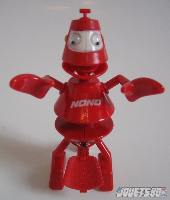 Salut c’est moi Nono, j’suis le robot héros…je suis tout en métal et je mesure 7cm. Mes yeux tournent dans tous les sens, et je peux ouvrir la bouche afin de manger mes petits clous ! (dommage qu’ils ne sont pas ajoutés en tant qu’accessoires). On peut voir mon compartiment à clous en ouvrant la trappe de mon ventre. Je peux me déplacer rapidement car j'ai ma roulette arrière de sortie. (Ndlr: rarement visible dans le D.A., exemple avec l'épisode Hératos). Origine: France